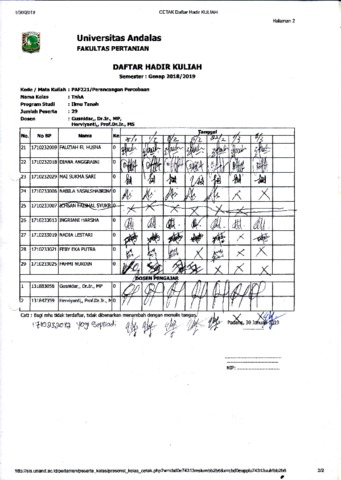 Gusnidar, Gusnidar Daftar hadir kuliah Perancangan Percobaan Klas Tanah A. No publish. (Unpublished)