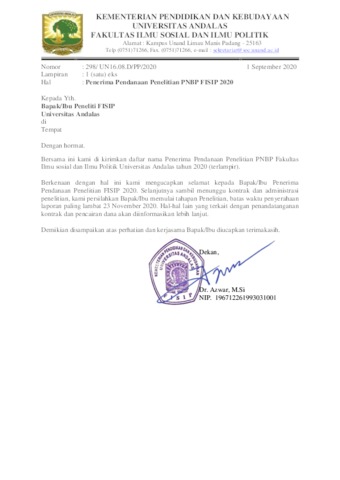Cory, Silvi Kontrak Penelitian FISIP 2020. FISIP. (Unpublished)