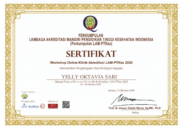 Sertifikat workshop online klinik akreditasi Lam-PTKes 2020 a.n yely